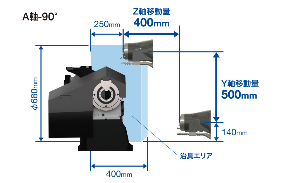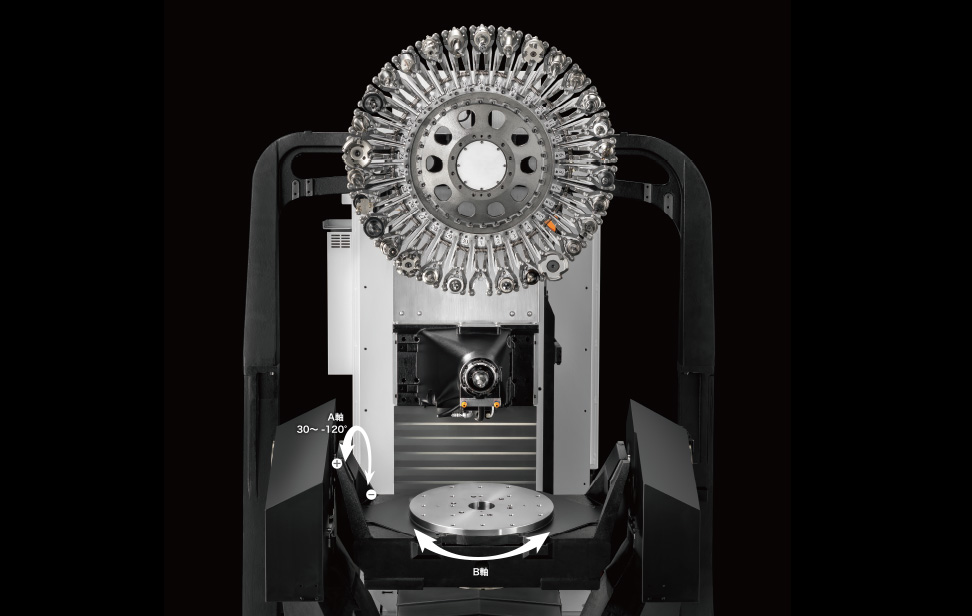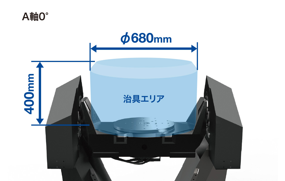 治具エリア⌀680mmの傾斜ロータリーテーブル搭載