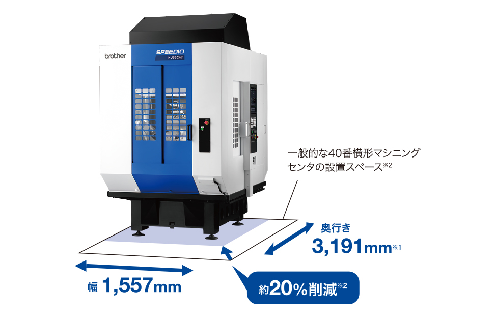 1 省スペースで大物・長尺ワークに対応可能