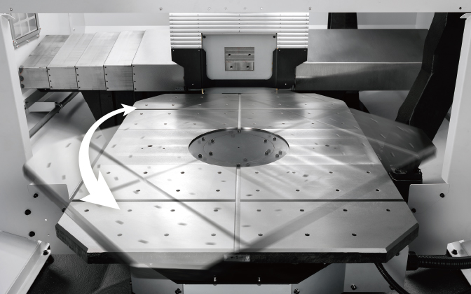 広い治具エリアと高信頼性を兼ね備え、ノンストップ加工により高生産性を実現