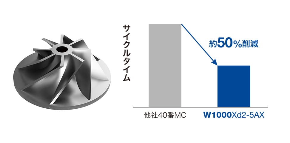 30番マシンの軽量、低慣性の特長と、自社開発NCにより、