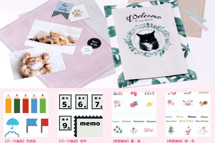 使い方は簡単です。飾りたい写真に合わせてフレームやリボン、パーツを印刷しましょう。好きなサイズにカットして写真を台紙に貼り付け、デコレーションを楽しんでください。