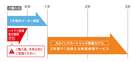 ※A3インクカートリッジ搭載モデルについて3年間の無償修理を保証するものではありません。