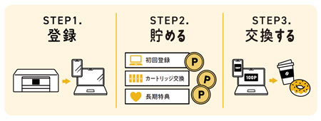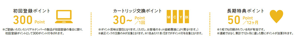 対象のプリンターを「トク刷るポイント」サービスに登録すると、使っているだけで自然にポイントが貯まる便利なサービスです。