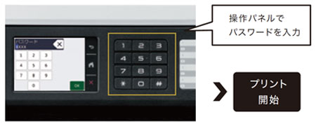 第三者に見られたくない文書や機密書類は、プリンタードライバーでパスワードを設定すると本体のメモリーに蓄積。本体パネルのパスワード入力によって印刷を開始するセキュリティ印刷です。