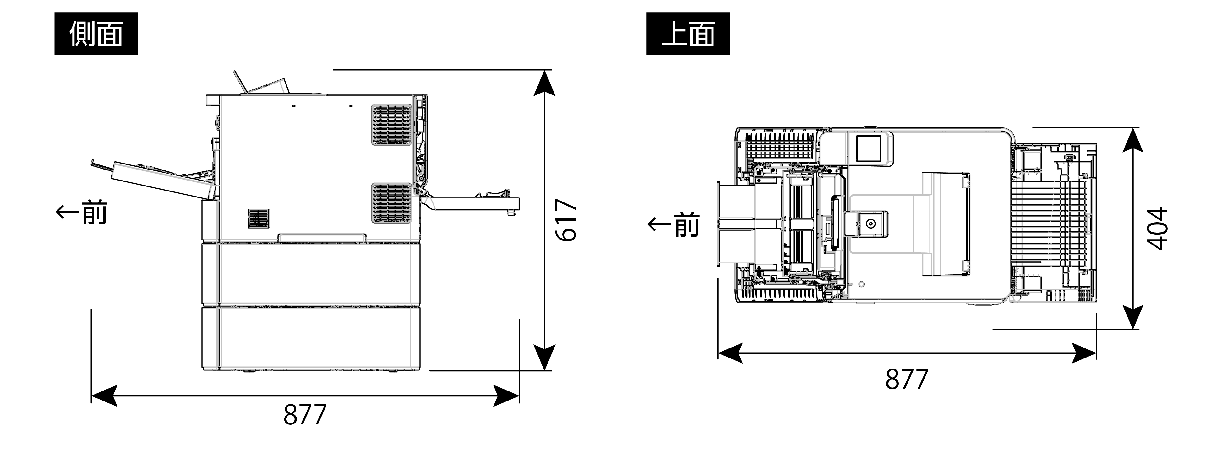 | 消費電力 | [印刷中(平均)] 約500W [ピーク時 *22] 約880W [ディープスリープ時(平均)] 約0.4W |