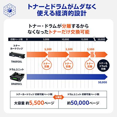 トナー/ドラムが分離型だから無駄なく使い切れる